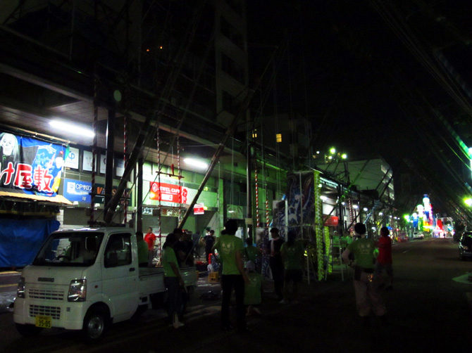 設営は祭り初日の0時スタート。