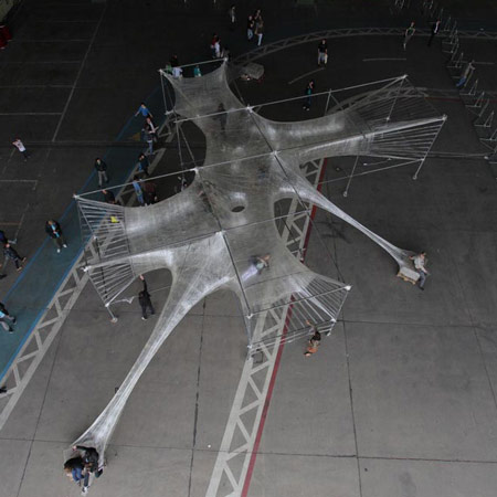ありふれた工業製品の単純な使い方でできる有機的な空間。