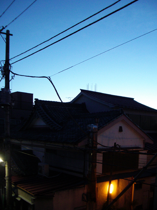 写ってる建物は、僕の家の向かい、第一宝湯っていう銭湯。